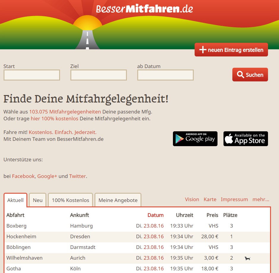 - Offer: bessermitfahren.de works, differently than the other pages, without registration. You are looking for travel and then contact the driver.