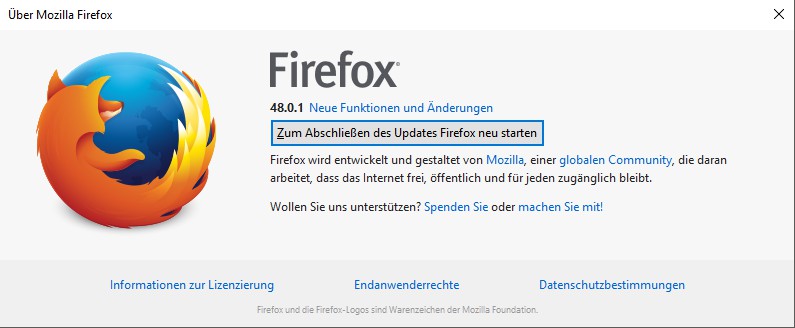 - Then click on the Button "To Complete the update Firefxo restart" to install the Update.