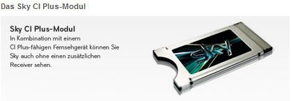 - The reception of Sky is incredibly simple, because the Pay TV provider is represented in both the cable network and via satellite. In addition to a CI-Plus-capable Receiver or CI Plus-enabled TV, you do not need any additional Hardware.