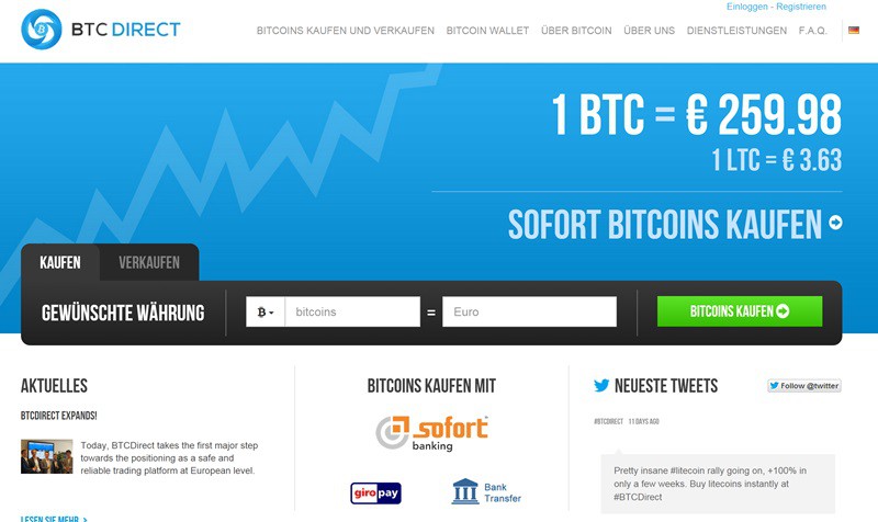 - Another Bitcoin marketplace is on the website btcdirect.eu to find it. The provider is working since the year 2013 on the market and has its headquarters in the Netherlands. The website is maintained for users in this country is entirely in the German language.