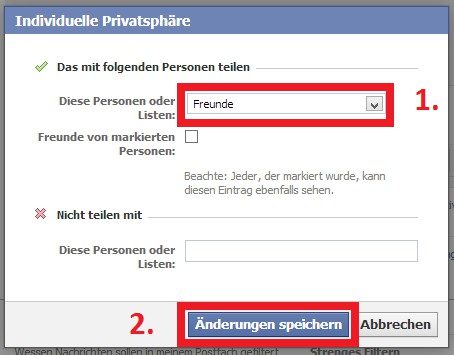 - Here you should select the "friends" and to remove the hook (see picture). You also have the possibility to certain persons to honor the insight in your posts user.