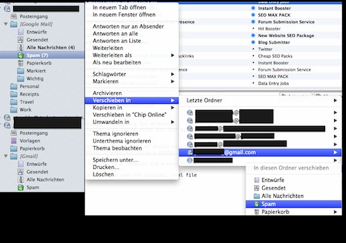 - In the last step, click with the right mouse button on the selected e-mails. Select "Copy" or "Move in" to the new account and the appropriate folder you want the Emails to take.