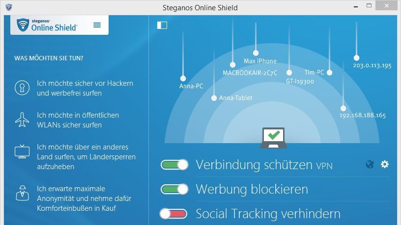 - Handling: Once you have installed the free Tool and created your Account, you can set the home screen of the program, what you can do. You can first activate the VPN-Server or other settings to the anonymity set.