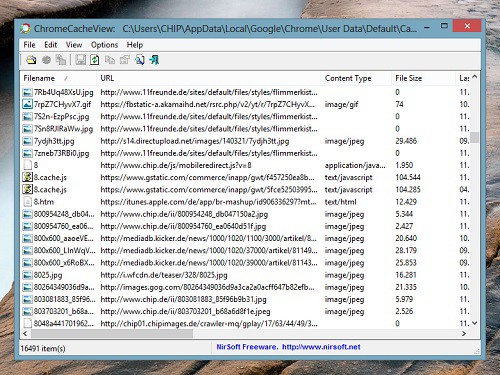The Cache in Google Chrome to look at, it's best to use the free program chrome cache view.