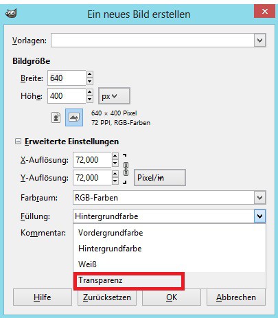 - In the dialog box that appears, open the advanced settings and set the fill to "transparency".