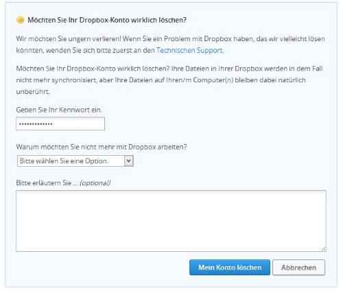 Dropbox-delete your Account