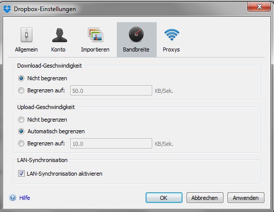 - Then, enter the desired Upload speed in Kbytes per second. Alternatively, you can Dropbox the Upload rules. To do this, select the Option "Automatically limit to".