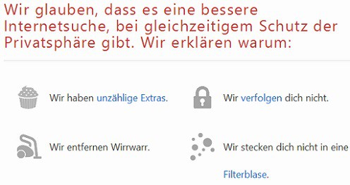The search engine DuckDuckGo has clear objectives: to searches to remain anonymous, search results by relevance instead of Marketing measures appear. Became known, the search engine primarily as "anonymous Alternative" to Google. Overall, the Search Engine is characterized by four "unique characteristics":