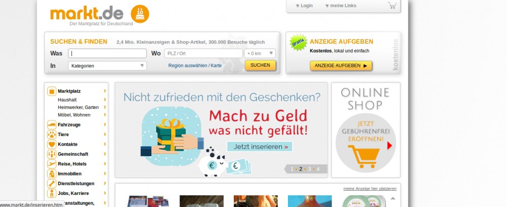- Markt.de with nearly 3 million visitors, a large English language Portal. Here, too, the Freemium model comes in. As long as you buy private and sell, you pay nothing. You want to have extra functions for your display, this will cost a small fee.