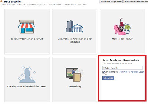- On a fan page community "meets" the best. The right type is important for later settings.