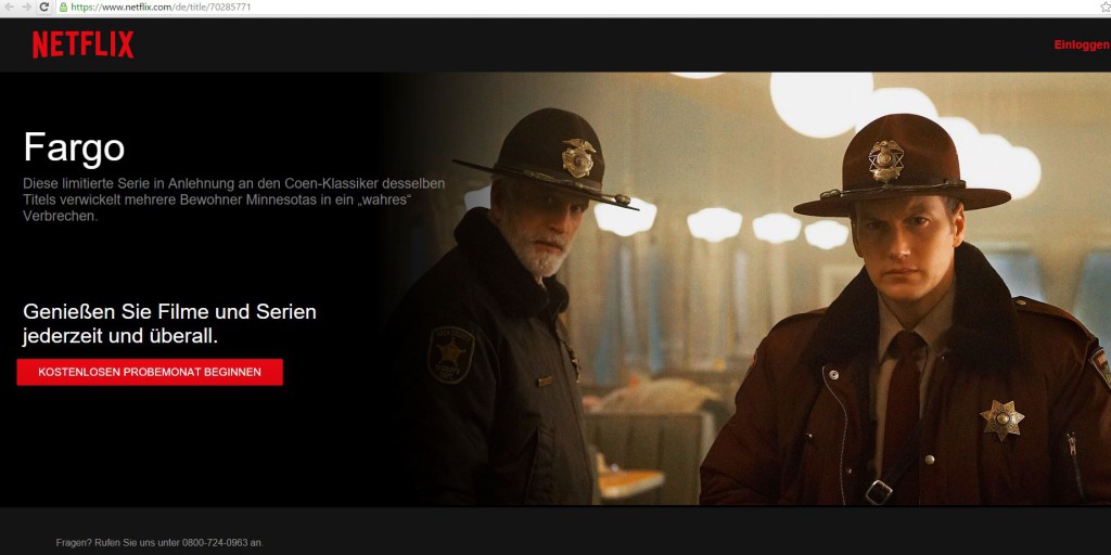 The crime series "Fargo", a total of 30 episodes in three seasons. This runs in the classic flat-rate model exclusively for Netflix. You can purchase the series, but also with other providers.