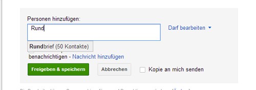 - The file(s) for a Google group, enter in the field "persons" add the name of the group and to select these. You can inform the people in the group via E-Mail about the release.