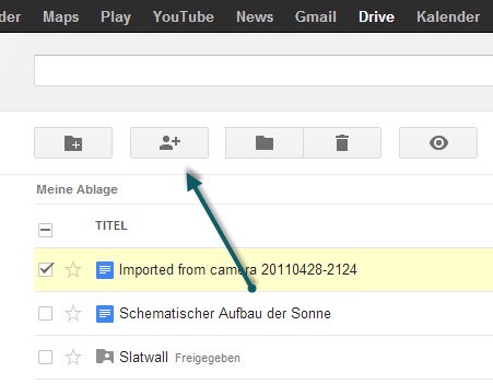 - The Option to share files is with Google Drive "Share". The hides in the sub-menu: With a right mouse click on the file that you want to share you can go to the Option "Share".