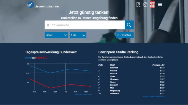 - The prices listed are updated according to the market transparency office, among other things. You can use the filters to sort the results by price or distance.
