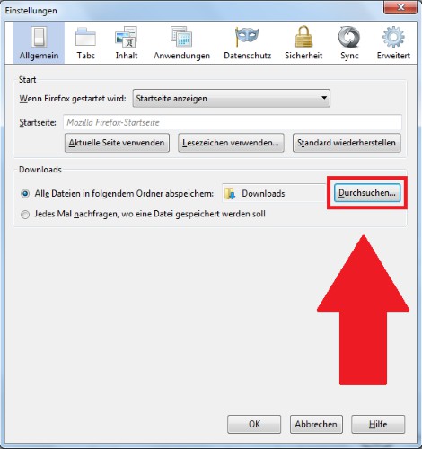 - Under the "General" tab, below the category "Downloads". Right click on the "Browse" Button and select the desired folder.