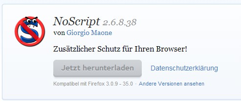 - Download the NoScript Add-on. You can find it under this Link for free Download.