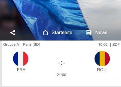 Impetus for the European football championship 2016 is on 10.June, at 21:00 at the Stade de France. Hosts France will start the championship with the match against Romania - in the next three game the previous week rounds a minimum of two teams per day, always. The German Eleven runs for the first time on Sunday, 12.06. on the lawn. Kickoff for the game Germany against Ukraine is also to 21:00.