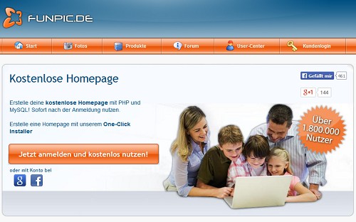 - Funpic.de provides a free Webspace of 500 MB and unlimited MySQL storage. Ideal if you use your home page only for private purposes. In addition, you can create your own photo albums. In addition to its own individual Domain for additional Subdomains you can create.
