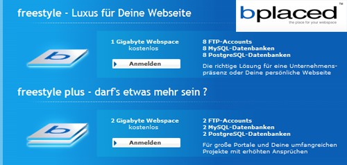 Under the Portal of Square7 runs the page bplaced.net. This offers two free packages.