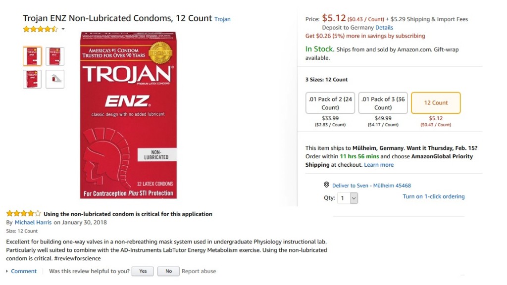 - While a scientists a Vibrator for scientific purposes, there is another the research budget for Trojan condoms from. According to the Review, the condoms made of natural suitable rubber suited, one-way valves in a non-breathing mask system of the physiology laboratory. Is supplemented the Review with the note that non-lubricated condoms would not be used for this purpose as well. How did he find out?