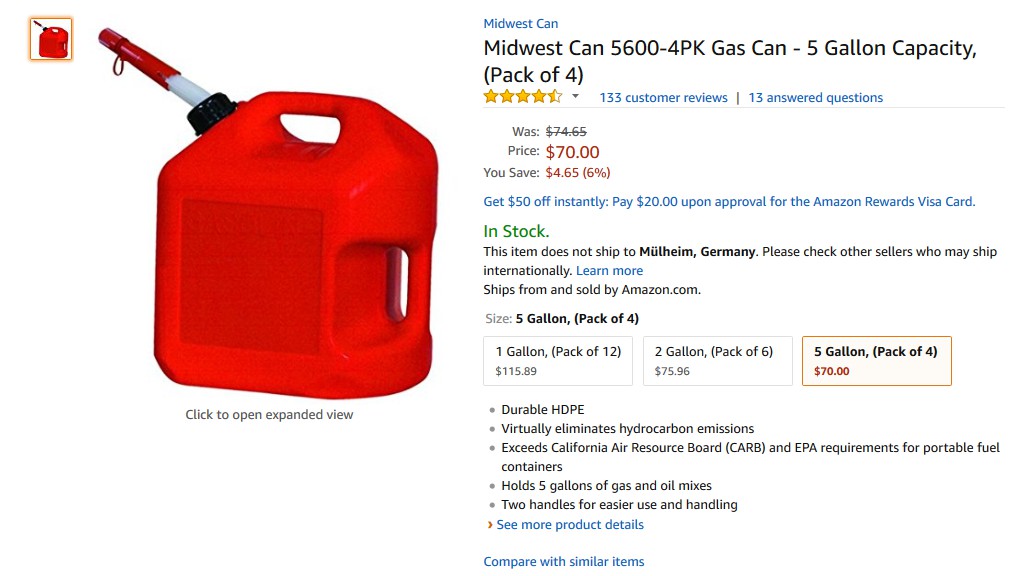 - Not all Amazon products will have a positive rating: This is a gasoline canister , the scientists did not approve of this.