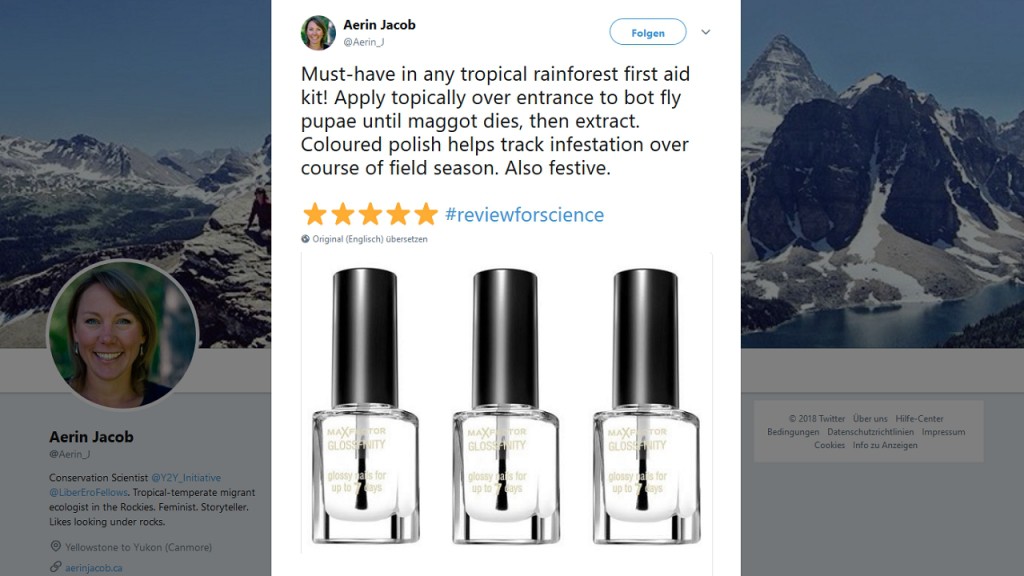 - What is the jungle camp is a No-Go, is for some scientists in the jungle is a Must-Have: nail Polish. Reported that the researcher Aerin Jacob on their Twitter page.