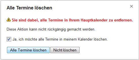 - You will be asked if you really want to delete all appointments in the main calendar. You put the check mark for "Yes" and confirm with "All occurrences delete" (see image).