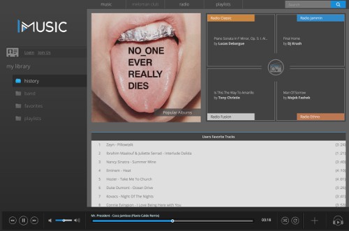 With iMusic, you can listen to online music, in Playlists, organize and on different devices. Completely free of charge. The offer includes, above all, successful and well-known musicians and Bands. This can't be legal, or? Our Assessment: