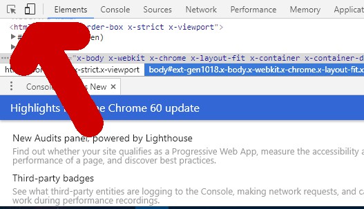 - In the upper left corner of the developer tools, you click on the Button for the mobile view (see photo).