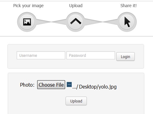 - Then, you can upload a photo via the Upload Button. Note, however, that there are no filters and editing options for your images.