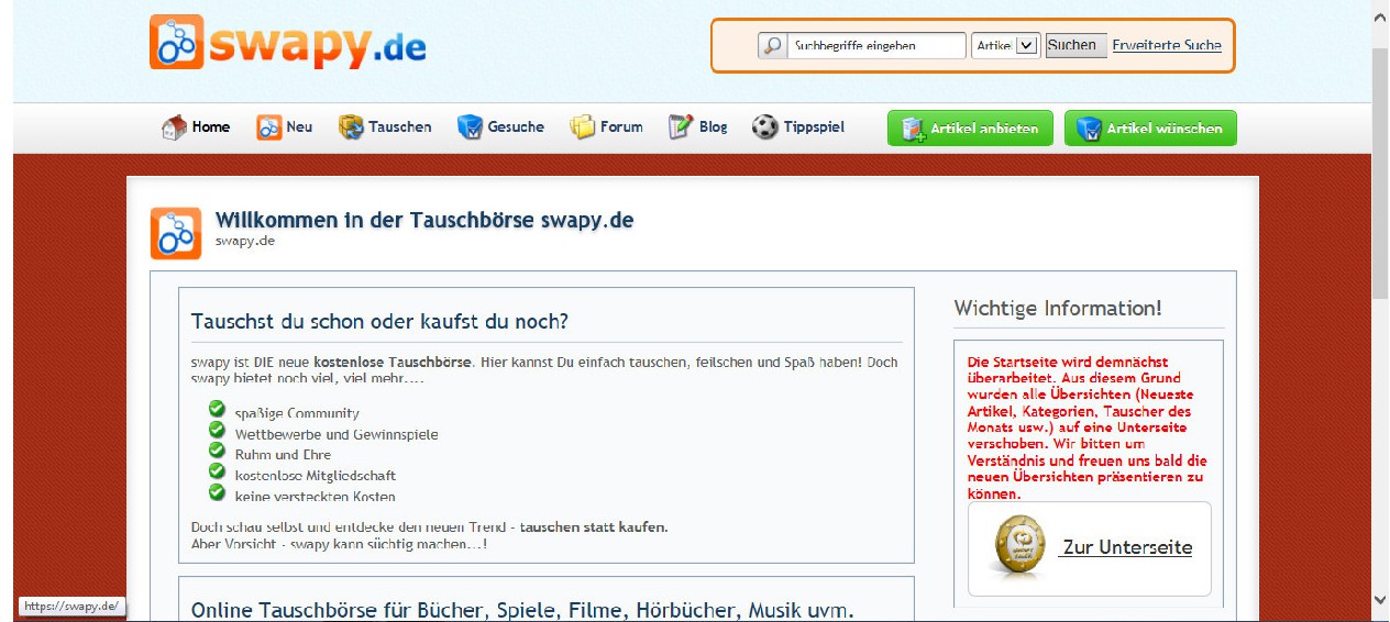 - Currency: The System is obtained as in the case of exchange ticket, with swapy and exchange, however, "swapy-Taler". Here, too, you must have first coins to be able to article purchase. For activities in the Community, and the participation in the sweepstakes, you will receive bonus points that you can redeem in dollars.