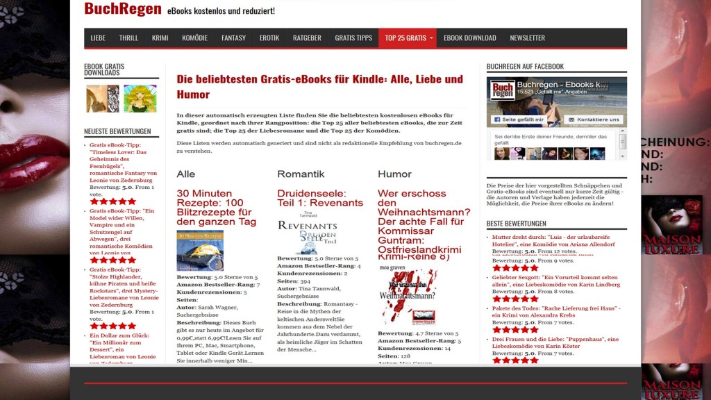 On the website of the book the rain will find you the Top 25 of the most popular eBooks, the for free are offered.