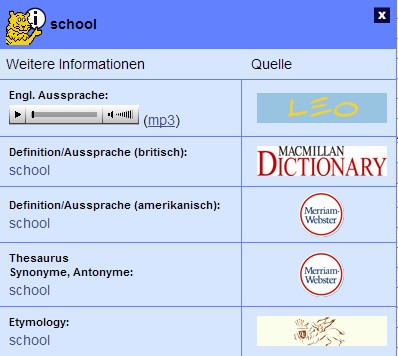 The new Website of the Online dictionary leo.org it allows you not, language examples to download. This Feature, however, there were some time ago. With a little Trick, you can access the older Version of leo.org and this examples as MP3 voice download files:
