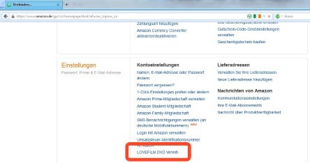 - Under the "account settings" click on the last Option listed "Lovefilm DVD rental".