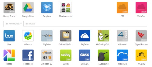 - Supports numerous Cloud services like Google Drive, Box, SugarSync, Dropbox, SkyDrive, MyDrive, Web.de and GMX. You can also Save data from FTP servers, and Cloud, the WebDav support in the service integration.