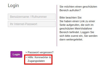 - In the case of a cable contract, click in the vicinity of the Logins on "I forgot my username or password". If you enter your customer number, your password or your user name via e-Mail.
