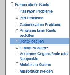 - Click in the left bar on "questions about's account" and select "delete account", the Option "How do I remove my account?".
