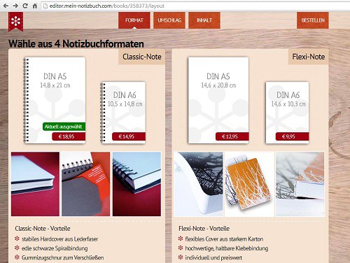 Another provider "Meinnotizbuch.de". Here you can also create a custom notebook: