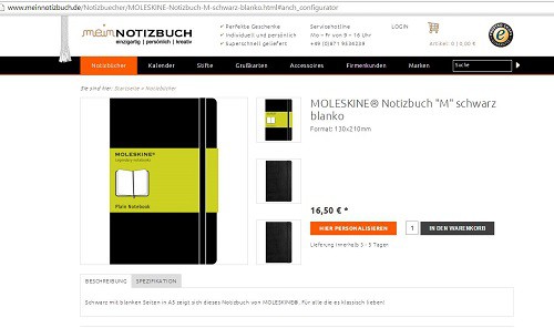 - The pricing is designed for "Meinnotizbuch.de" very transparent: you can always see at a glance how much your notebook is going to cost and get information on price mark-UPS, if you want to, for example, a Text engraving. Notebooks are there with the provider, but only from 16.50 euros.