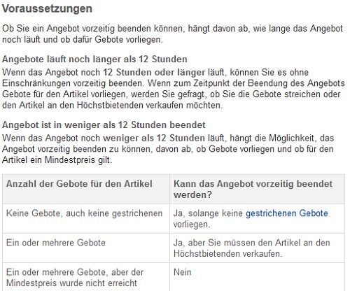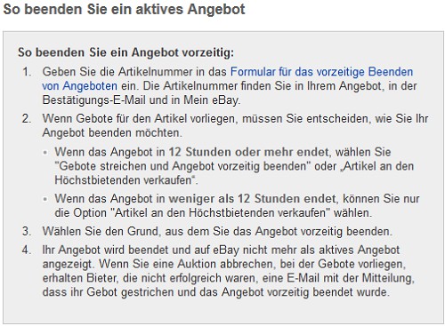 - Your offer has been running for more than 12 hours, you can end it prematurely. If bids have been made, you can decide whether you return the item to the highest bidder or all the bids you want to delete.
