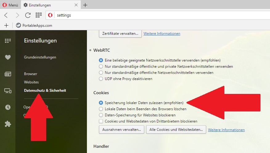 Cookies in Opera to allow