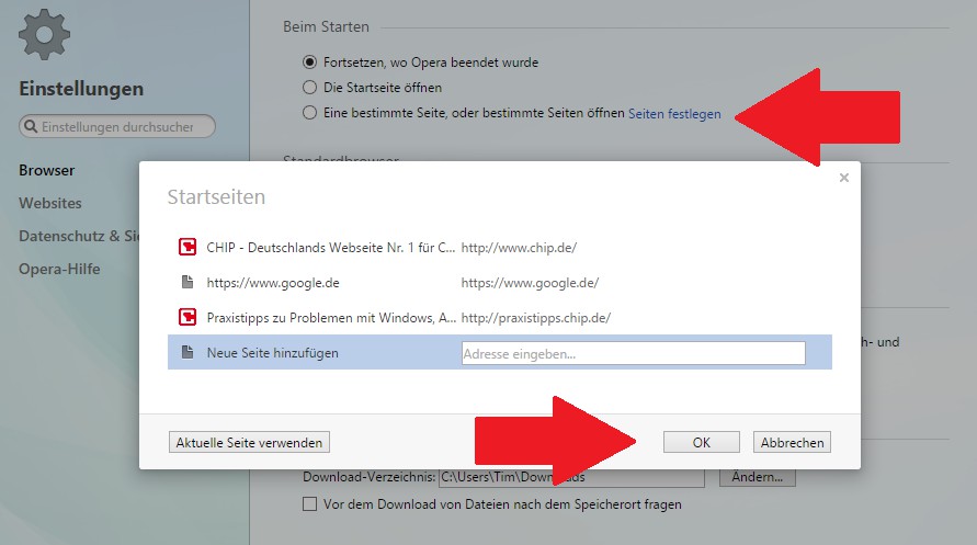- Here you can enter all of the desired sites and close the window then on the "OK"Button.