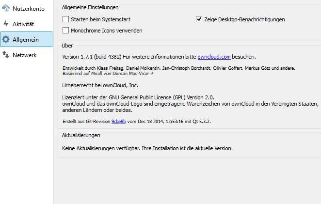 For the synchronization Client, you can install it on your computer, OwnCloud provides an automatic Updater. Under Windows and Mac OS X, the Updater will keep the Client always up to date. Under Linux, the automatic Updates do not work, unfortunately, but the Updater will inform you as soon as new updates are available.
