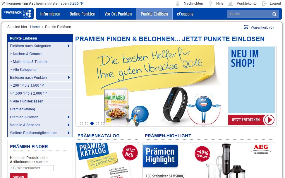 - Open the website of Payback and log-in to your Account.