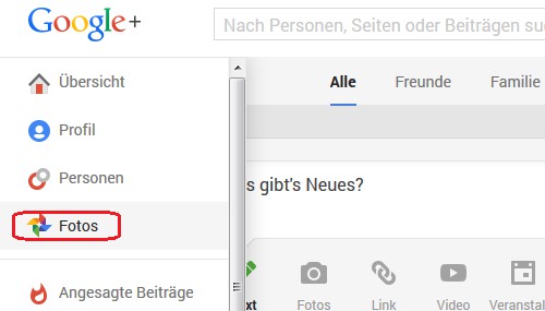 - Log in to Google+ to you, go with the mouse on the "Overview" and in the list, click on "photos".