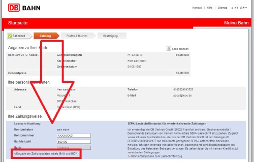 - Click the top right of the menu bar on the "Bahn card".