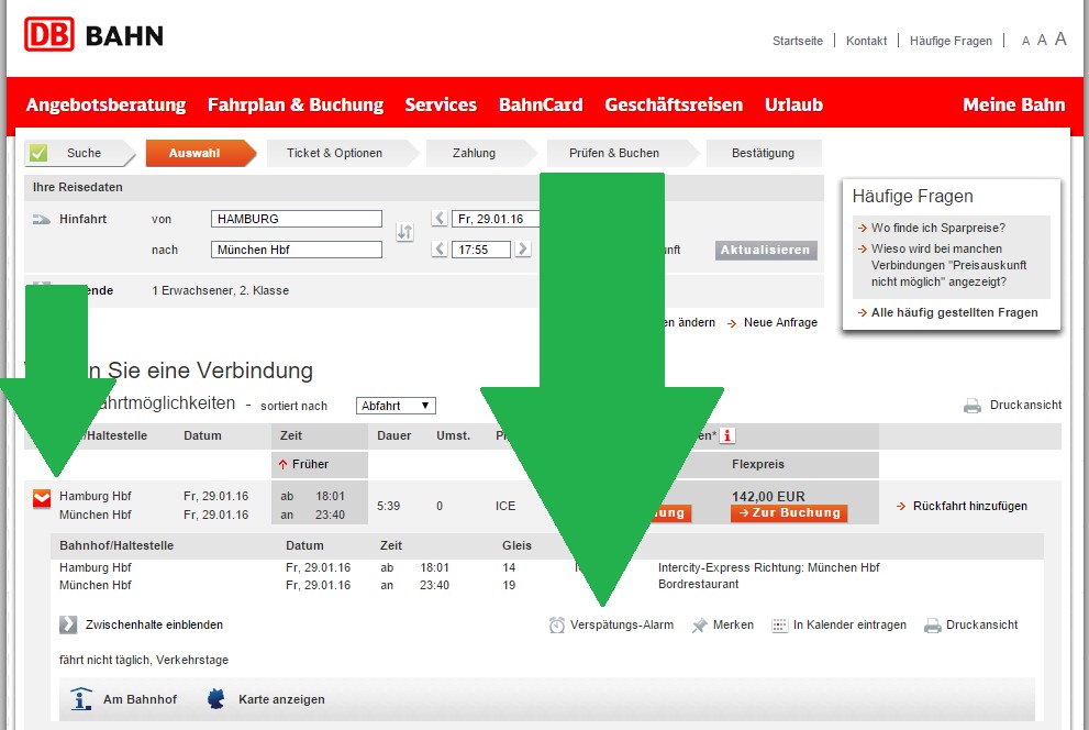 Note: Note that the delay of alarm for very short-term bookings is always available. In order to use this feature, you will need a free path.de-Account.