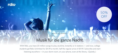 Currently the Rdio discount of 50 percent can use, unfortunately, only students from the United States. German students are registering at a loss in front of the form.