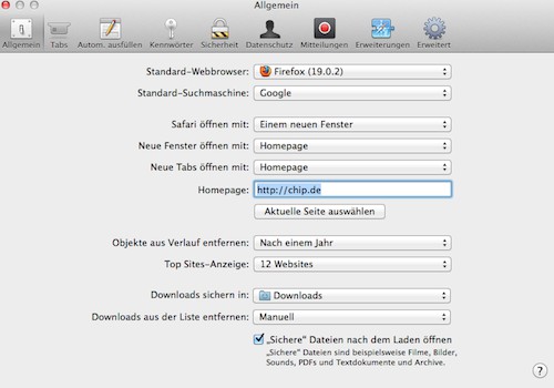 - In the line "Homepage" and enter the URL of the desired homepage.