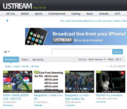 - Away from the video games you can find on Ustream, sports events, Talk-round or private Live Streams.